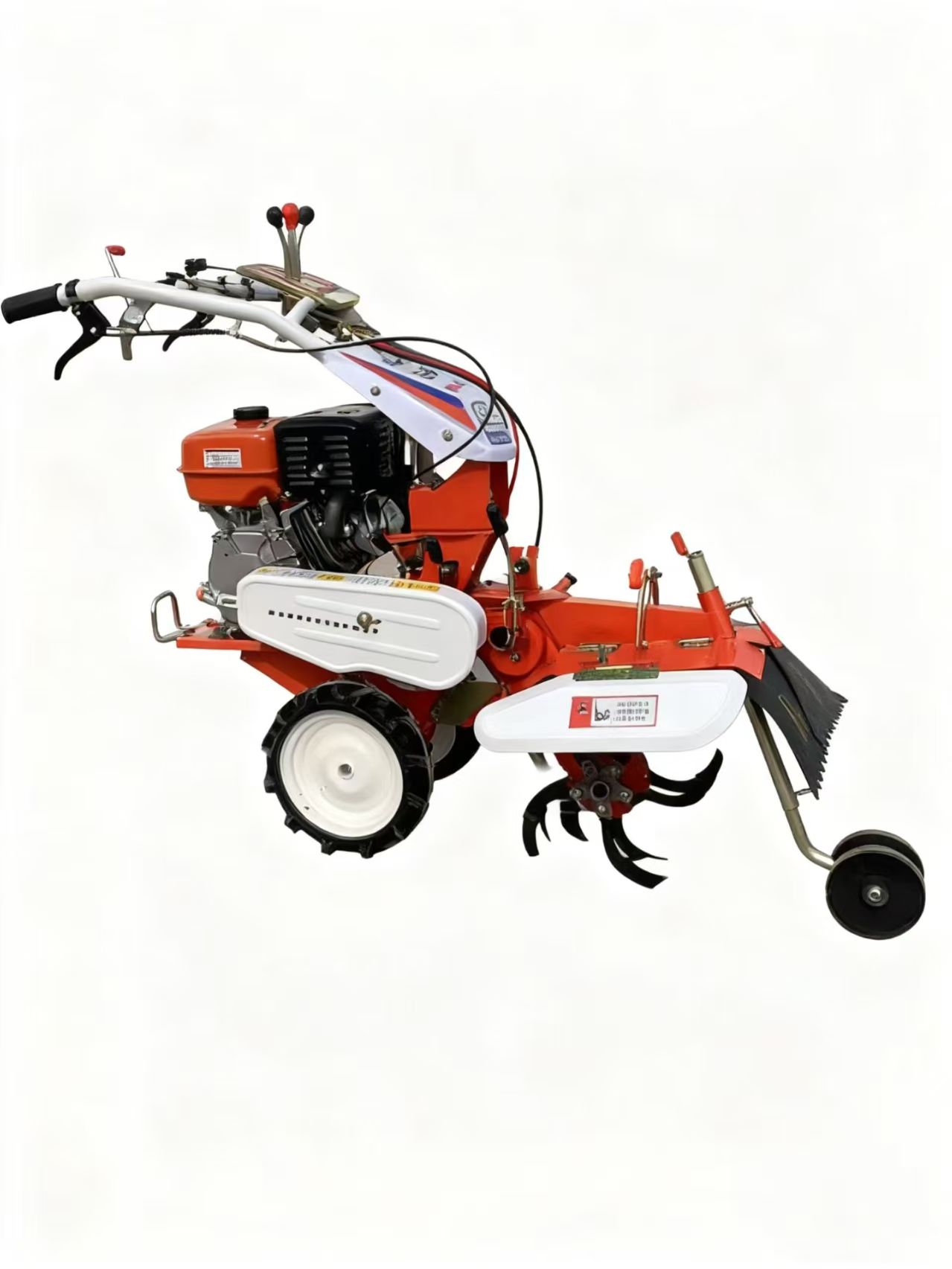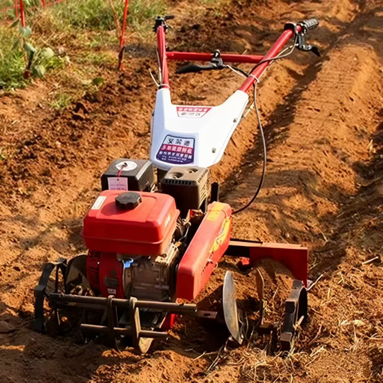 - Arbetstillbehör: Ett löstagbart rorkultshuvud med 4–6 böjda pinnar för jordsvarvning. Valfria tillbehör inkluderar en ås för grönsaksodling och en ogräsmaskin för underhåll efter plantering.