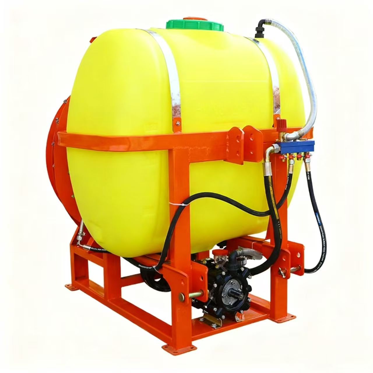 Viktiga spraykomponenter inkluderar justerbara luftblästerfläktar och flervinklade munstycken. Fläktarna genererar ett starkt, fokuserat luftflöde för att transportera bekämpningsmedelsdroppar djupt in i trädkronorna – och når även de inre grenarna – medan munstyckena med 3-5 sprutmönster anpassar sig till olika fruktodlingstätheter, från lågväxande bärbuskar till höga äppelträd. En kraftig stålram säkrar alla delar, med antivibrationskuddar som minimerar skador undertraktorrörelse i ojämn terräng.