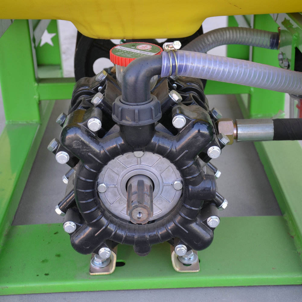I kärnan har sprutan en polyetentank med hög kapacitet som motstår korrosion av bekämpningsmedel och säkerställer långvarig användning; dess klarröda finish förbättrar sikten i täta fruktträdgårdar, vilket minskar kollisionsrisken. Tanken ansluts till en kraftfull centrifugalpump som drivs direkt avtraktorsPTO system, som levererar konsekvent vattentryck för att garantera jämn spridning av bekämpningsmedel.