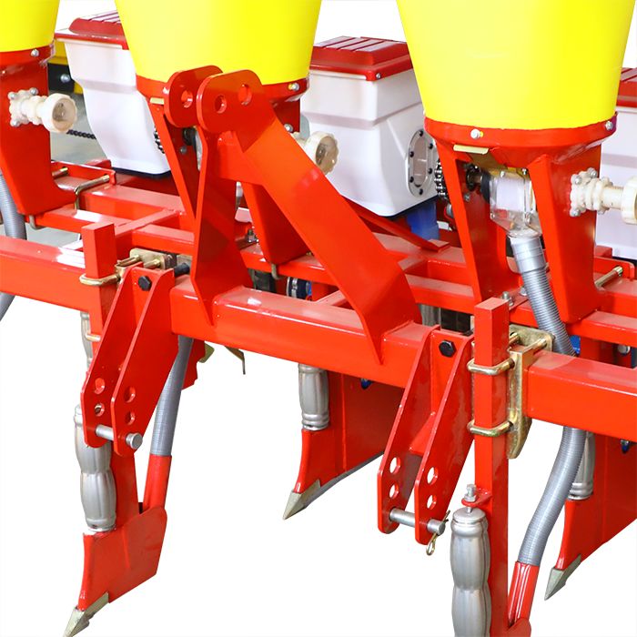 Tractor-fästad majsfröare är en jordbruksmaskinutrustning speciellt utformad för majsplantering. Tractor-fästad majsfröare kan exakt passa traktorer med 40-60 hästkrafter och kan snabbt installeras och användas utan ytterligare modifiering. Oavsett om de är i breda och platta plottar eller kuperade jordbruksmarker med något böljande terräng, kan traktorfästning av majsfröare fungera stabilt, vilket effektivt löser anpassningsproblemet för majsås under olika landformer och sparar felsökningstid för planterare.