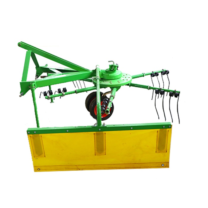 Rotary Tractor Rake finns i roterande och vårtyp. Under driften dras rake framåt av traktorn och drivs av kraftutgångsaxeln.
