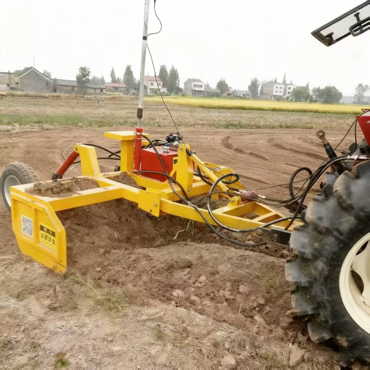 - Skrapblad och lyftsystem: Det 3-5 m breda, slitstarka stålbladet skrapar och sprider effektivt jord. Den kombineras med ett hydrauliskt lyftsystem, som tillåter 0-60° vinkeljustering och 0-1,2 m djupkontroll för att anpassa sig till olika terrängbehov.