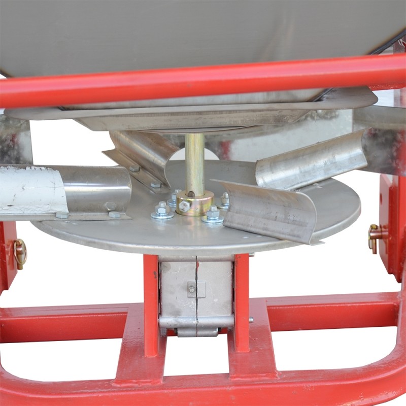 Arbetsprincipen för FASTMA®-gödselspridaren i rostfritt stål är baserad på en kombination av mekanisk transmission och centrifugalkraft. Först tillsätter operatören gödningsmedel till behållaren av rostfritt stål. Gödseltillförseln och spridningsintervallet kan ställas in via kontrollpanelen. Efter att enheten har startat driver transmissionssystemet de två tallrikarna att rotera med centrifugalskivan med konstant hastighet. i behållaren transporteras jämnt till tallrikens yta av en inbyggd transportanordning. Gödseln kastas utåt av den roterande tallriken och bildar en fläktformad spridningsyta. Detta möjliggör jämn gödselfördelning.